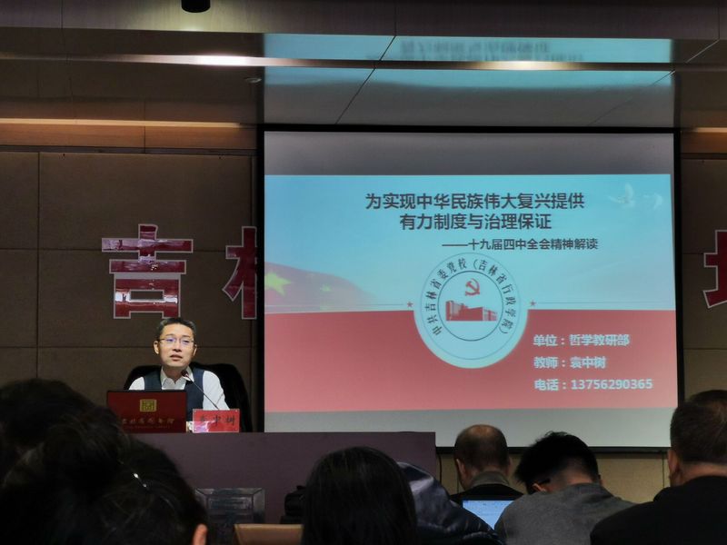 MMDS学会在吉林省图书馆参加“为实现中华民族伟大复兴提供有力制度与治理保证——党的十九届四中全会精神解读讲座”活动。入党申请人培训班部分学员参加了此次活动。此次活动由中共吉林省党委校哲学教研部副教授,哲学博士袁中树主讲。