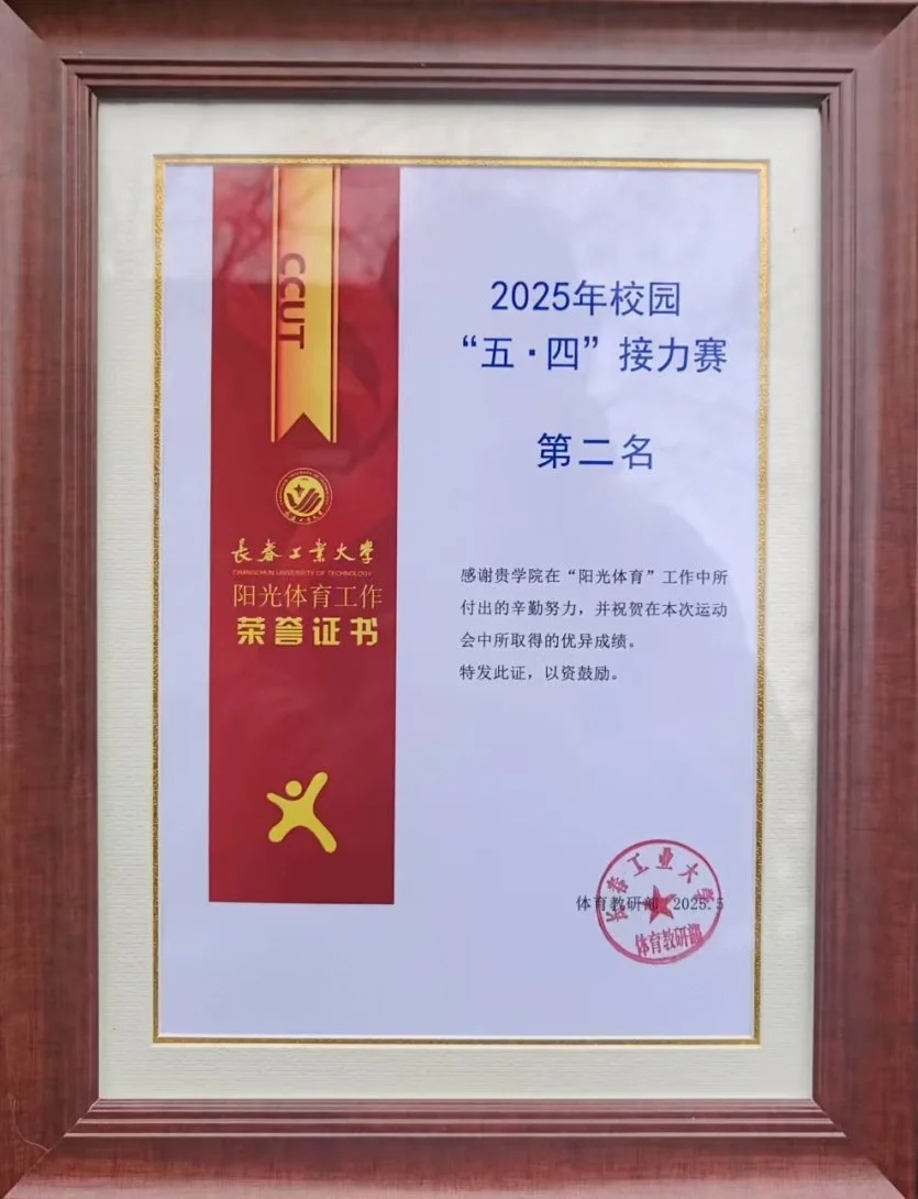 本网讯(通讯员 王梓羽)5月7日,学校2025年“五·四”接力赛在北湖东校区体育场顺利举行,我院荣获第二名的好成绩!