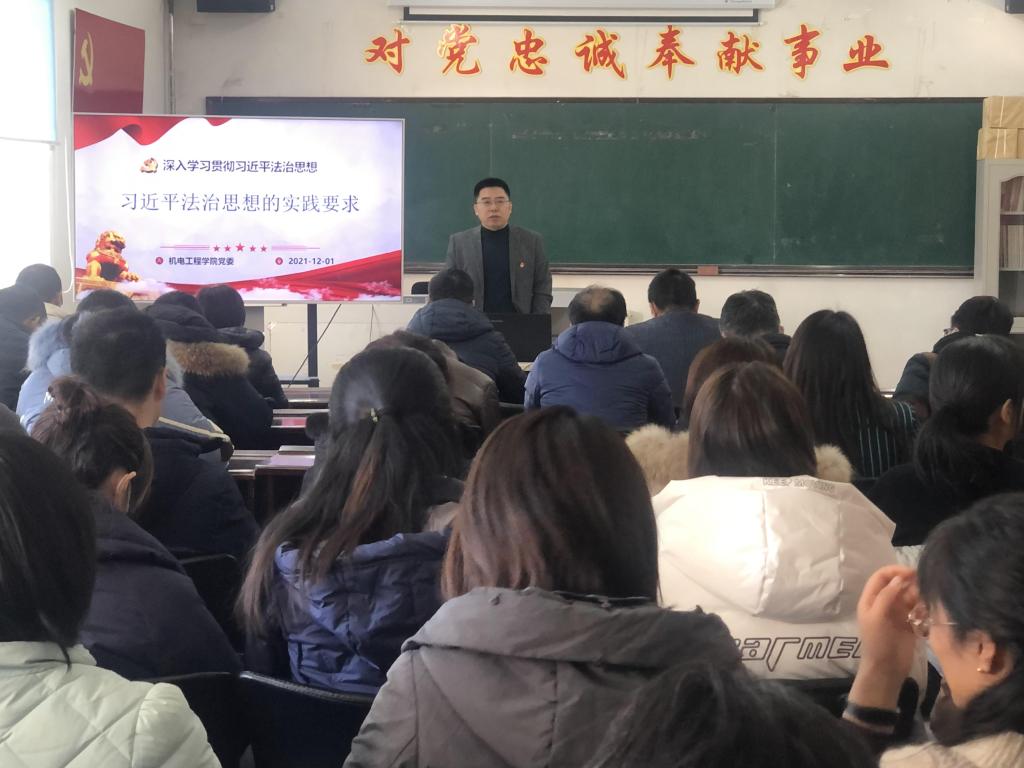 组织全体教师进行政治理论学习,认真学习贯彻习近平法治思想的实践要求,学习会由党委书记李奇涵主持。