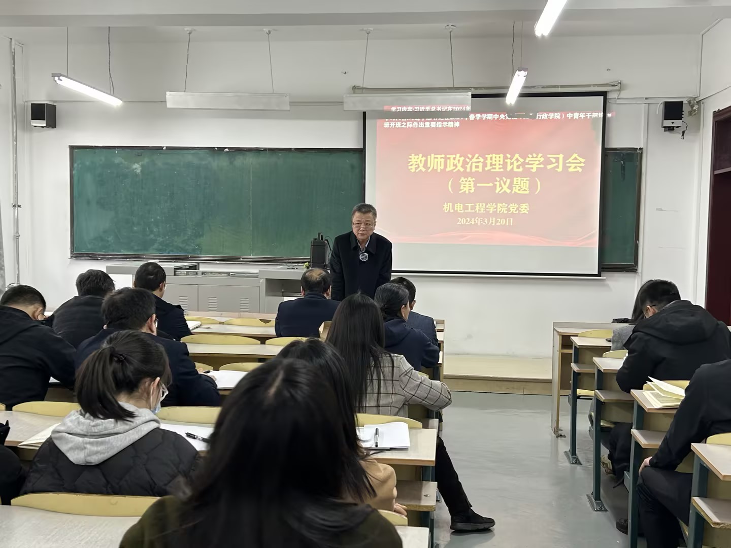 3月20日,学院党委在机电1592室学习传达落实学校2024年度工作会议精神。学院全体教师参加会议,会议由学院党委书记张利军主持。