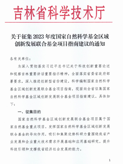 关于征集2023年度国家自然科学基金区域创新发展联合基金项目指南建议的通知