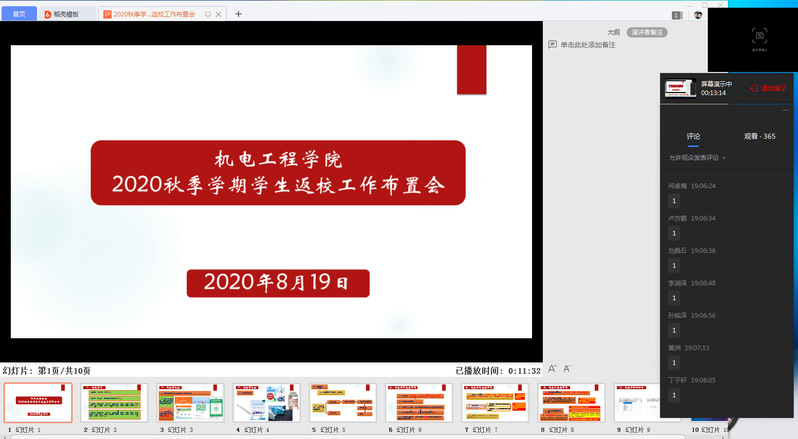 2020秋季学期学生返校工作布置会》的PPT和《91制片