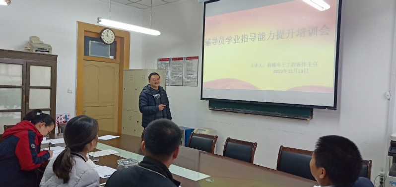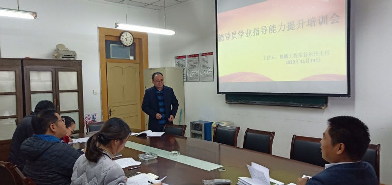 本网讯(通讯员 宗姣姣)为进一步加强和改进我院大学生学风建设工作,充分发挥辅导员老师在学风建设中的教育引导作用,1113日上午,学院特邀请各系主任为学生工作办公室全体辅导员老师进行学生学业指导能力提升培训。培训会由学院党委副书记黄向东主持。