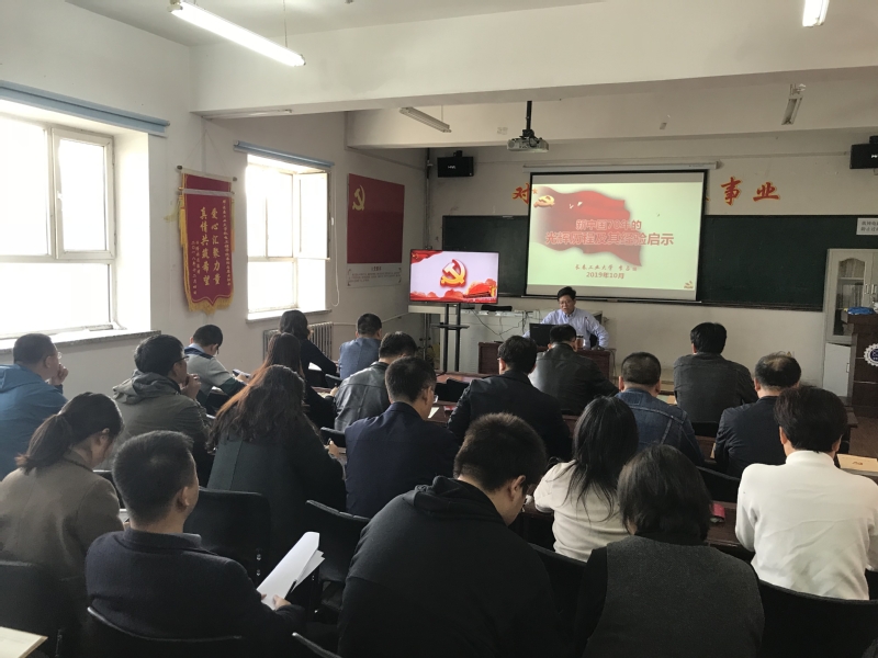 上了题为《新中国70年的光辉历程及其经验启示》主题党课,学院全体党员教师参加了学习。