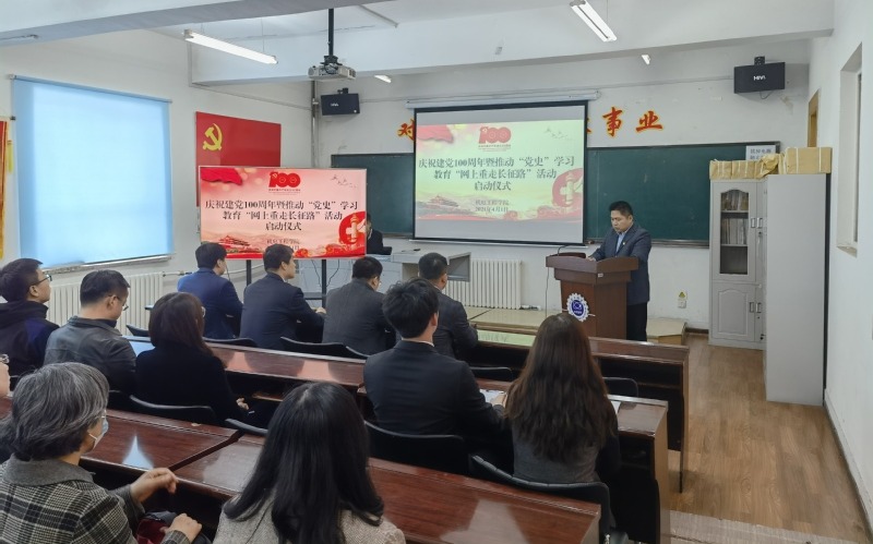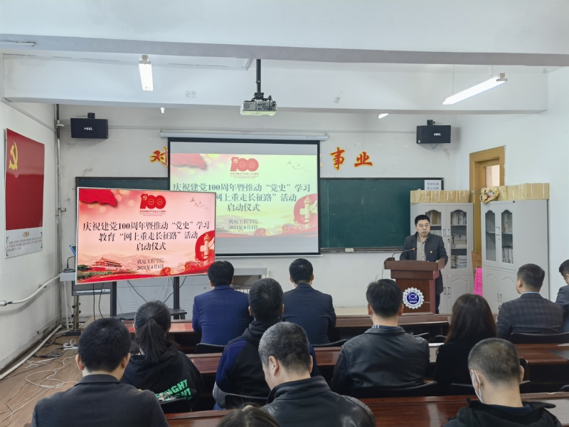 召开庆祝建党100周年党史学习教育“网上重走长征路”活动启动仪式,会议由学院党委副书记黄向东主持,学院全体党政领导,全体党支部书记、学生团支部书记及师生代表参加了活动。