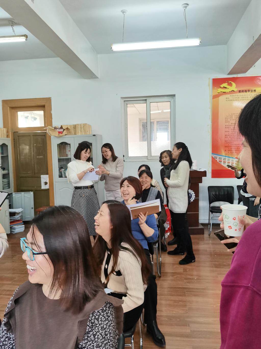 活动过程中还设置了票选我最喜欢的两道美食你画我猜游戏环节,最终特制的提拉米苏、红烧牛肉和香酥小鱼获得了全场最受欢迎的好评,制作人也事无巨细的向大家一一分享了美食的制作方法和精髓。活动在一片欢声笑语的游戏中推向了高潮,平时身陷工作与家庭繁重任务下的女教工们终于在此刻释放了压力,有的老师表示已经好久没有如此开心。