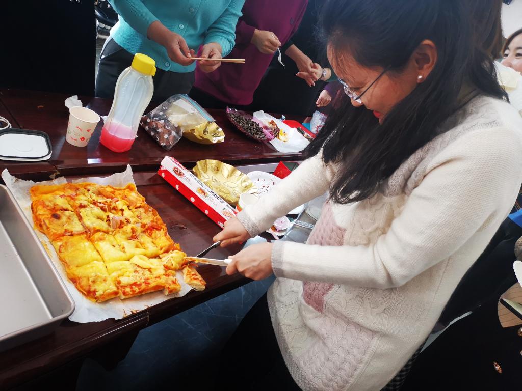 活动现场摆放了多种多样的中西美食、香气四溢、热闹非凡。有的老师自带了专业的咖啡机,现场为大家制作咖啡拿铁;有的则带了刚出锅、热腾腾的红烧牛肉;也有的带了美味的西式甜点、刚烤好的双拼披萨,还有冰皮月饼、香酥小鱼、冰糖雪球、粉红佳人等等各具特色、琳琅满目的美食,让人垂涎欲滴,更吸引了大批学院男老师们的捧场,每样美食都几乎被一扫而空。