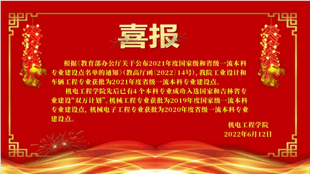 91制片 先后已有4个本科专业成功入选国家和吉林省专业建设“双万计划”。机械工程专业获批为2019年度国家级一流本科专业建设点,机械电子工程专业获批为2020年度省级一流本科专业建设点。