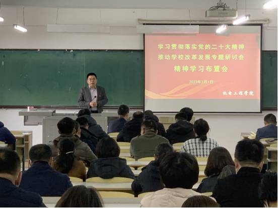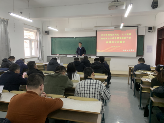 召开全体教师大会,传达学习学校召开的“学习贯彻落实党的二十大精神,推动学校改革发展专题研讨会”精神,并就新学期工作作出具体安排。会议由学院党委书记李奇涵主持。