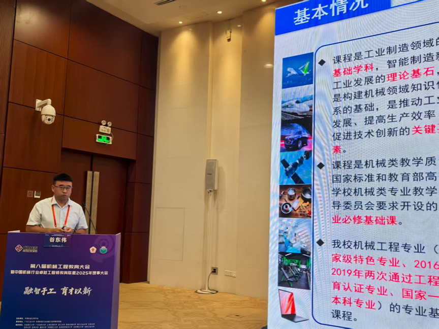 学院教师郝兆朋、谷东伟参加第一分会场进行工程教育专业认证的理念与实践专题学习。谷东伟受邀在第三分会场-机械制造类课程教学创新实践,以“产业引领、校企合、五措并进《机械制造基础》课程教学创新实践”为题进行报告。