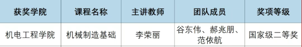 教师李荣丽主讲,谷东伟、郝兆朋、范依航共同参与的《机械制造基础》课程团队,在激烈的竞争中脱颖而出,荣获国家级二等奖。