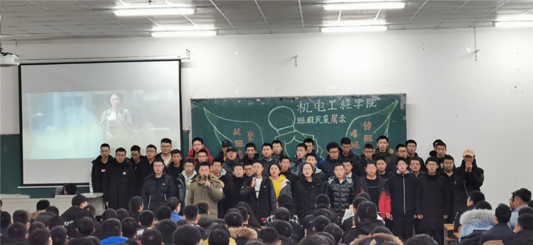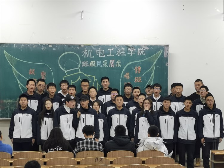 “求真尚美,勤学笃行”“鹰隼试翼,风尘翕张;坚定理想,展翅翱翔”“自信励志,合作竞争”“为梦想坚持不懈,不卑不亢”……11个班级精神慷锵有力,展示着新时代青年大学生向上向善的精神面貌。《少年中国说》《骄傲的少年》《我的梦》《我相信》《明天会更好》……11支班歌大合唱,配合用心编入的舞蹈动作、励志口号,机电“少年们”共同演绎着团结拼搏、激昂向上的班级风貌。