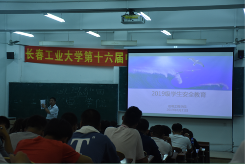在综合一教室召开2019级新生安全教育大会。本次安全教育大会由黄向东老师主讲。