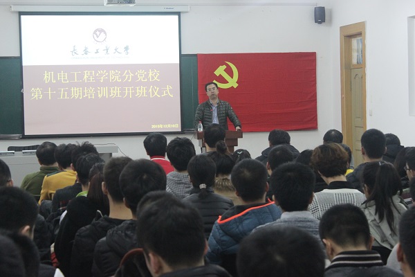 分党校第十五期培训班开班仪式暨学生党员、积极分子教育专题报告会在学院会议室举行。学院党委副书记、分党校副校长胡刃锋及学生党支部书记、全体学生党员、重点积极分子参加了开班仪式。开班仪式由学院团委书记周巍主持。