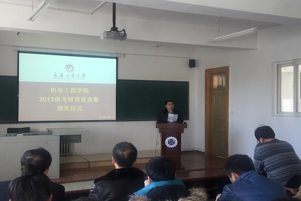 于11月29日举行2013级考研英语竞赛,并于12月14日在主楼会议室举行颁奖仪式。学院副院长李奇涵,团委书记周巍,学生第二党支部书记、2013级辅导员王潇