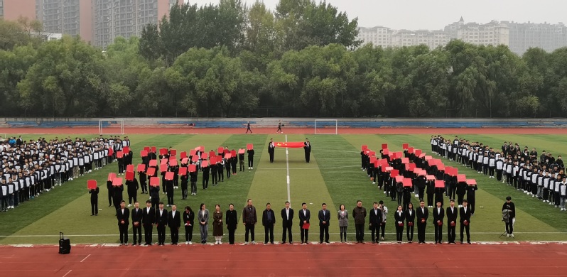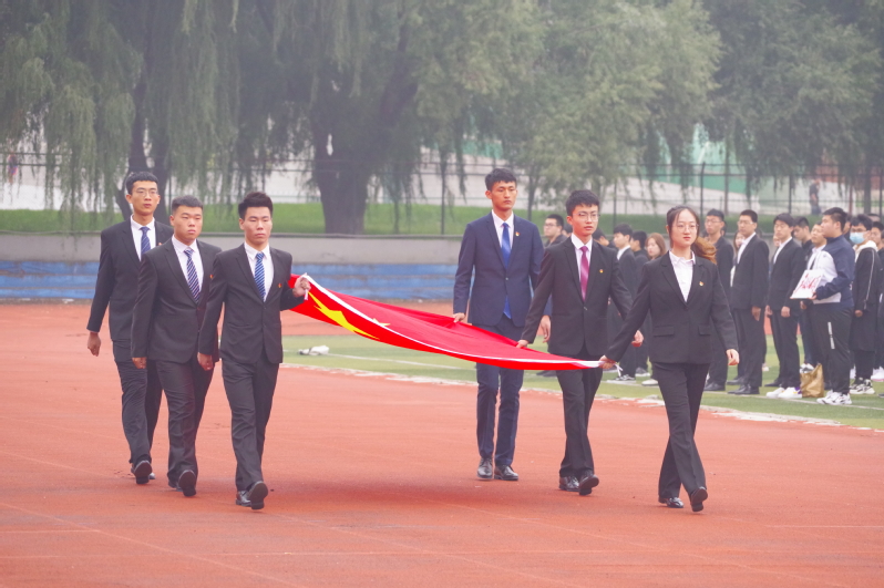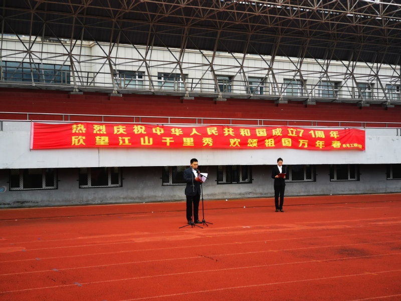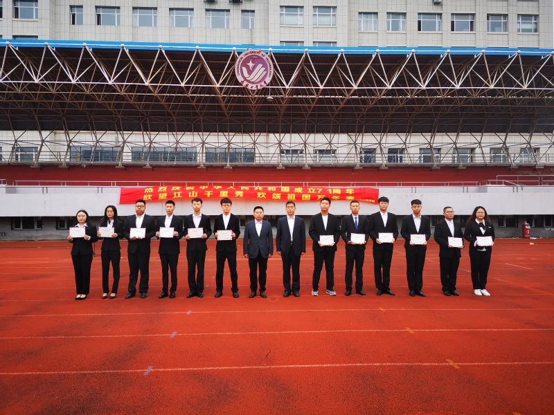 在南湖运动场举行升国旗仪式,学院班子成员,辅导员和全体学生共同为祖国71周岁华诞献礼。