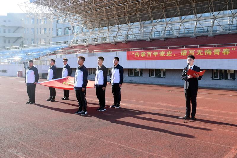 我院举行“传承百年党史,谱写无悔青春”主题升旗仪式